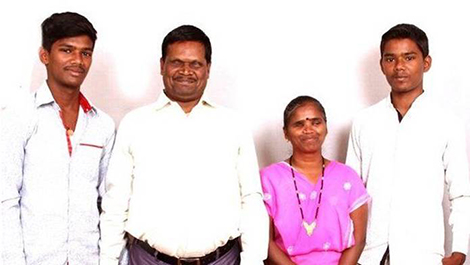 Ravi với vợ (cũng bị mù) và 2 con trai.
