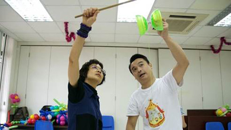 Hề Ken Ken (phải) đang huấn luyện học viên.