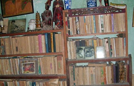 | Giá sách trong căn phòng của vợ chồng Lưu Quang Vũ. |