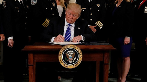 | Tổng thống Trump ký dự luật trừng phạt Nga ngày 2-8. |