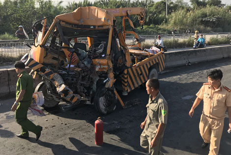 Sau khi "bò" lên dốc cầu, anh Giang rà thắng cho xe đổ dốc hướng về quận 2 thì gặp sự cố. Chiếc xe cứu hộ lao thẳng vào đuôi xe đầu kéo đang lưu thông phía trước khiến 2 xe bị mất kiểm soát lao xuống chân cầu. Cabin xe cứu hộ bị kẹt cứng trong rơ-mooc xe đầu kéo biến dạng hoàn toàn. Ba người mắc kẹt trong cabin xe cứu hộ bất động.