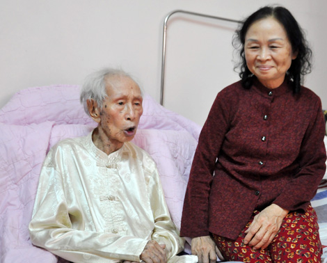 | Nhà nghiên cứu, soạn giả Mịch Quang say sưa ca cho con gái Ngọc Khuê nghe ngay trên giường bệnh. |