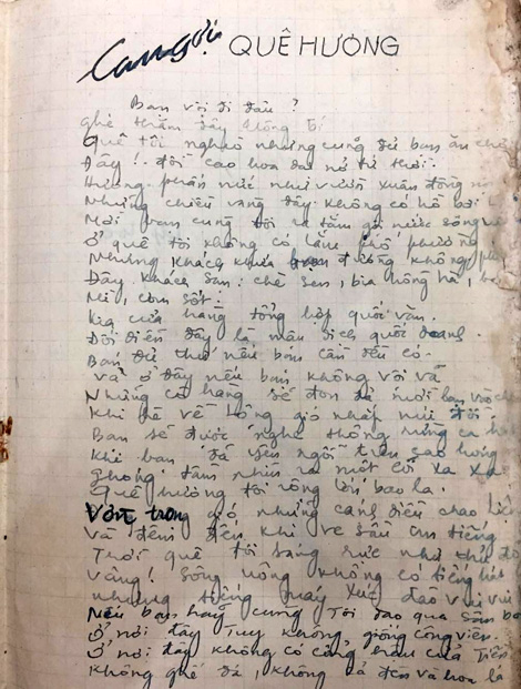 | Bản thảo viết tay của nhà thơ Võ Thanh An. |