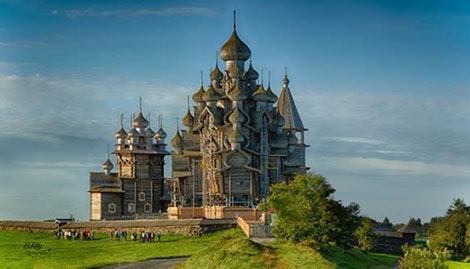 | Nằm trên đảo Kizhi giữa lòng hồ Onezh, nhà thờ Biến hình hoàn toàn bằng gỗ cổ xưa hết sức độc đáo. |
