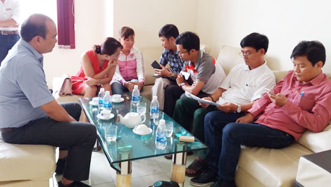 | Một số khách hàng mua phải đất dự án được bán theo kiểu “treo đầu dê bán thịt chó” của một công ty bất động sản kéo tới trụ sở để khiếu nại. |