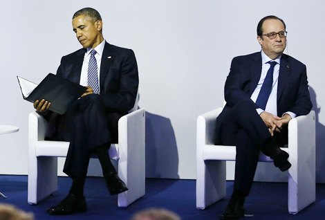 | Ông F.Hollande và ông Barack Obama trong một cuộc gặp. Ảnh: Getty. |