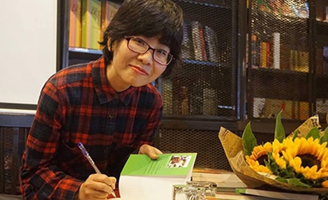 | Diệu Thuần đang ký sách tặng độc giả. |