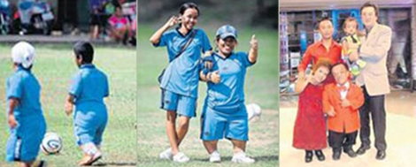 Từ trái qua: Các thành viên của Kon Krea trong một buổi thi đấu bóng đá; Noopin Kolmai và Ja-e; hình ảnh vợ chồng Jon với cô con gái Jenny.