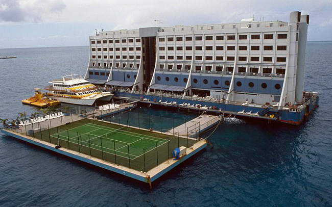 Nhằm thu hút khách, thoạt đầu Tarca định mua 3 chiếc tàu chở hàng cũ rồi cải tạo và ghép nó thành khách sạn nổi, neo đậu trên rạn san hô.