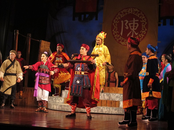 | Vở “Nhân huệ vương Trần Khánh Dư” của Nhà hát Tuồng Việt Nam được trao Huy chương vàng Hội diễn Liên hoan Tuồng và Dân ca kịch toàn quốc năm 2019. |
