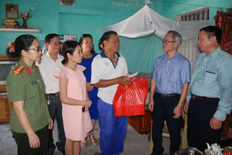 Đại diện Báo CAND và nhà tài trợ trao quà cho gia đình ông Phạm Bá Hường.