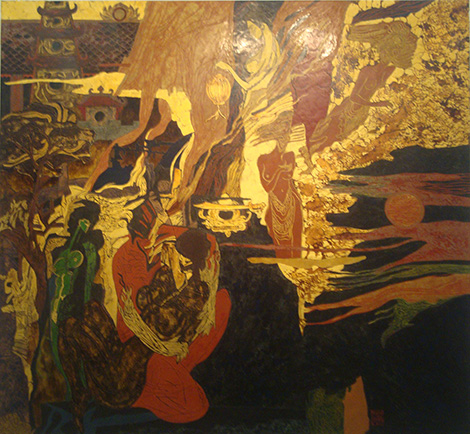 | Bức tranh “Đêm hội Long Trì” của họa sĩ Nguyễn Tường Linh. |