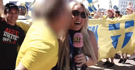 Nữ phóng viên Malin Wahlberg bị một người đàn ông hôn trộm. |