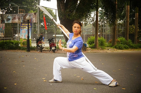 | Võ sư Nguyễn Thị Thanh Tâm trong bài võ đao Siêu xung thiên. |