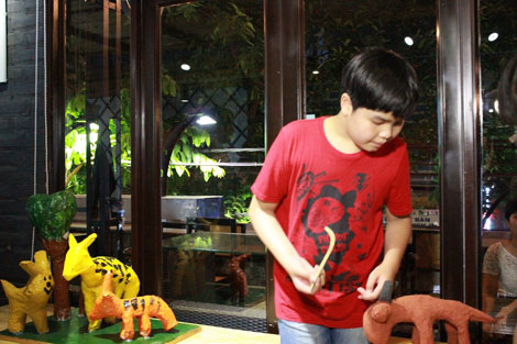 Trước đây đã có lần từng bị thu kéo, thu giấy thì giờ đây bố mẹ cậu lại chọn cho cậu những loại giấy nào tốt nhất, màu sắc nào mà cậu ưng nhất. Cậu bé tạo nên cả vườn bách thú trong nhà với những con vật đầy màu sắc bằng những tờ giấy, tờ bìa để khi chúng tôi nhìn ngắm và chạm tay vào thế giới những con vật nhỏ đấy thì chúng tôi thấy đó không phải là một cậu bé tự kỉ mà đó là một nghệ nhân tí hon với đôi bàn tay khéo léo có một tâm hồn tinh tế, với bộ não tính toán khoa học.