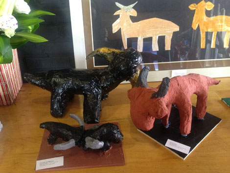 Những con trâu bằng giấy đen bóng bụng phình to với những chiếc sừng nhọn hoắt cong cong, con hươu cao cổ có bộ da màu cam sáng rực đáng yêu một cách kỳ lạ… và vô vàn bức tranh mà mỗi bức là một thế giới của sự tưởng tượng phong phú của các em. Hội họa là tiếng nói riêng được các em giao tiếp bằng màu sắc, đường nét, hình khối với nhiều chủ đề phong phú.