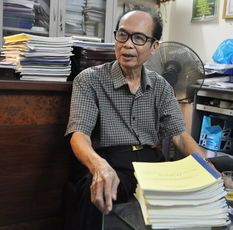 Chủ tịch Hội Điện ảnh Hà Nội, đạo diễn Đan Thiết Thụ bên chồng kịch bản "Lê Thái Tổ - từ Lam Sơn đến Hồ Hoàn Kiếm".