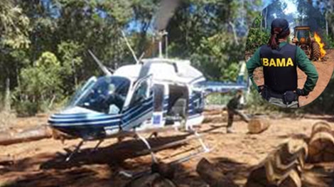 | Chiếc trực thăng tuần tra của Ibama và các đặc vụ Ibama trong chiến dịch chống phá rừng (ảnh nhỏ). |