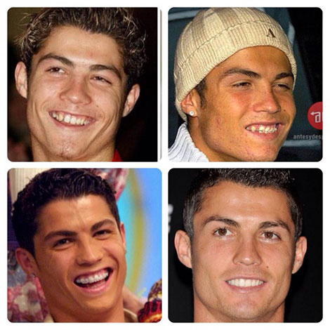 Một chi tiết rất dễ so sánh đó là hàm răng của CR7 đã được nắn chỉnh đều tăm tắp và được làm sáng bóng hơn. Bên cạnh đó, những chi tiết khác trên khuôn mặt của CR7 chẳng hạn như lông mày đã được chỉnh sửa một cách tinh vi. Cũng vì quá chăm chút vẻ bề ngoài mà Ronaldo còn được gán cho biệt danh “Ro điệu”.