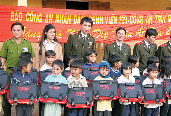 | Nhà văn Đặng Vương Hưng trong một chuyến công tác hoạt động xã hội từ thiện tại Quảng Nam. |