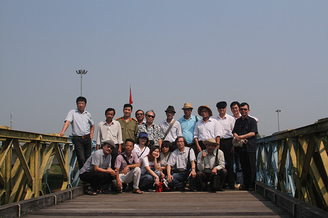 | Các nhà văn tham quan thực tế tại cầu Hiền Lương (Quảng Trị, tháng 4/2019). |
