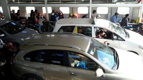 | Nhiều hành khách không chấp hành quy định phải ra khỏi xe khi lên phà. |