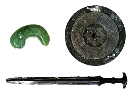 | Các mô phỏng Tam chủng thần khí linh thiêng của Hoàng cung Nhật Bản: Thiên Tùng Vân kiếm, Bát Chỉ Kính và Bát xích quỳnh khúc ngọc. Ảnh: rakuten.jp. |