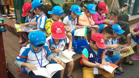 | Hoạt động bổ trợ ngoài trời hấp dẫn dành cho trẻ em đến Đường sách. |