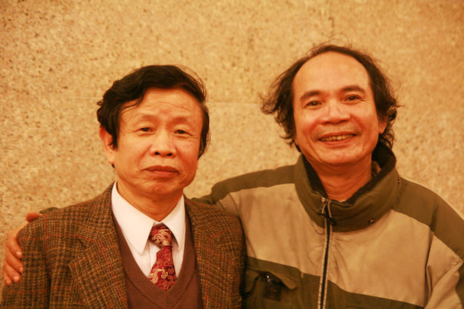 | Nhà thơ Nguyễn Phan Hách (trái) và nhà thơ Nguyễn Trọng Tạo. |