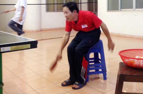 Ông ngồi trên những chiếc ghế nhựa kê chồng lên nhau, và cứ ngồi nguyên một chỗ, chỉ có đôi tay dẻo dai, nhanh nhẹn cử động. Hai người đàn ông, một giám đốc bệnh viện, một người khuyết tật, họ say sưa chuyền bóng. Tiếng bóng bàn đập liên hồi và những cú lướt đầy phấn khích. Mặc dù lưng của ông gập hẳn xuống, khi ông đứng tấm lưng nằm ngang vuông góc với đôi chân. Ông đi rất chậm, từng bước một. Những ngày trái gió trở trời toàn thân ông đau nhức. Vậy mà, ông, chính ông chứ không phải ai khác là người vô địch "ẵm" về HCV toàn quốc bộ môn bóng bàn trên xe lăn. Chuyện về ông là một câu chuyện dài, nhưng xin kể một cách tóm gọn và đầy đủ để hình dung về số phận của một con người…
