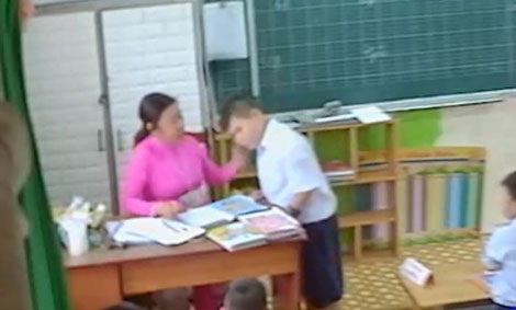 Giáo viên có hành vi bạo lực với học sinh (hình ảnh qua camera).
