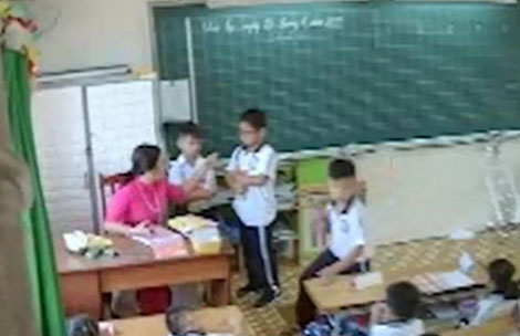Nhiều học sinh lo sợ mỗi khi bị cô giáo này gọi lên (hình ảnh qua camera).