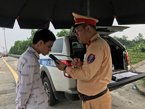 | Cảnh sát giao thông kiểm tra vi phạm nồng độ cồn trên cao tốc Hà Nội – Hải Phòng. |