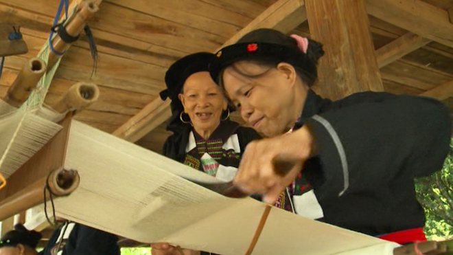 Trong ngôi nhà nhỏ của mình, chị Tống Thị Lâm, cháu của bà Ngọn, Chủ nhiệm Câu lạc bộ dệt truyền thống bản Khe Nghè, cũng mải miết với từng đường tơ, sợi chỉ bên chiếc khung cửi bằng gỗ đã ngả màu nâu. Mẹ chị Lâm truyền cho chị nghề dệt thổ cẩm này và để lại luôn cho chị cái khung cửi.