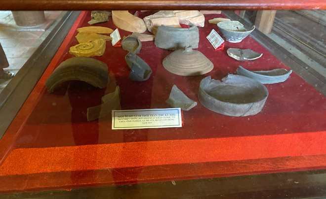 | Những mảnh sành sứ từ thời Trần được trưng bày. |
