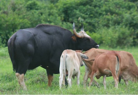 | Bò tót rừng ve vãn bò nhà (ảnh chụp năm 2012). Ảnh: L.Đ. |