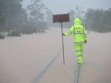 Mặc dù mưa ngớt nhưng đường bộ vào Rào Trăng vẫn chưa thông, vì vậy, đường thủy là con đường duy nhất để vào Rào Trăng. Thượng tá Phạm Quang Huy, Thủy đoàn trưởng Thủy đoàn 1, Cục CSGT cho biết, sở dĩ anh em phải "đi kẹp" hai xuồng cùng với nhau vì nước rất lớn, nguy hiểm nên hai xuồng đi cùng nhau để có thể hỗ trợ nếu xảy ra sự cố. Tại các tỉnh Hà Tĩnh, Quảng Bình, Quảng Trị, CSGT cũng là chủ công trong việc đưa các đoàn công tác, đoàn từ thiện vào trong các vùng cô lập, đưa người dân từ nơi tránh trú về nhà.