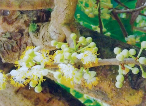 | Bạch mai trổ bông từ thân, bông, lá giống hoa mù u nên còn goi là mai mù u. |
