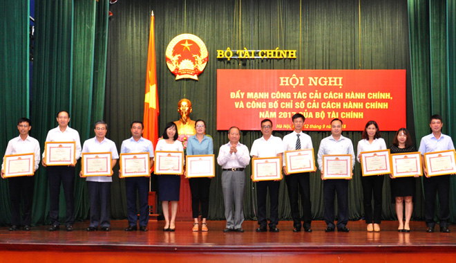 | Nhiều tập thể, cá nhân nhận bằng khen về thành tích xuất sắc trong công tác cải cách hành chính của Bộ Tài chính. |