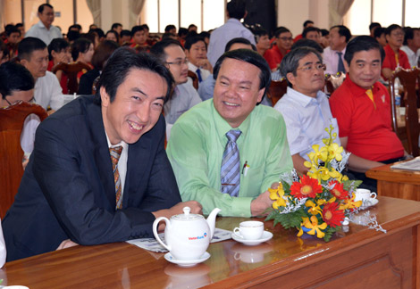 | Ông Lê Thanh Thuấn, Chủ tịch Tập đoàn Sao Mai cùng đối tác Nhật Bản. |