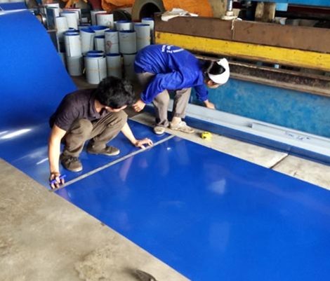 | Nhân viên Công ty Phong Phú đang cắt tấm tôn không đạt chất lượng cho khách hàng. |