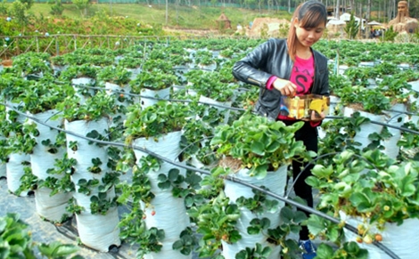 Độc đáo vườn dâu tây treo ở Đà Lạt