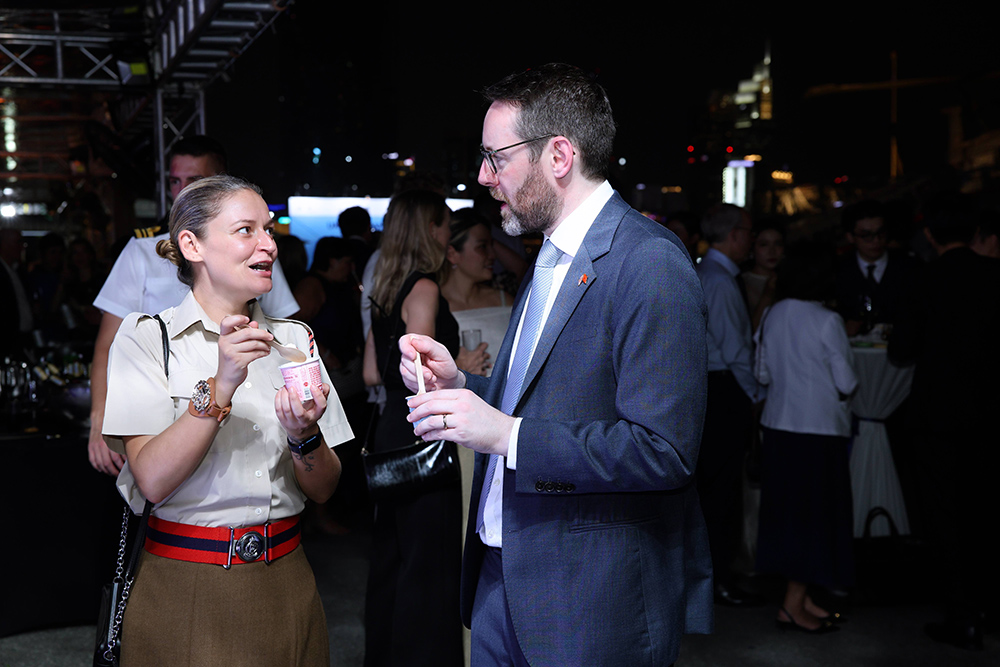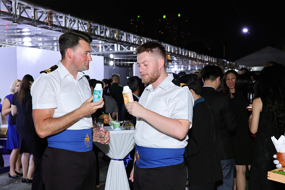 Trong không gian sang trọng của sự kiện đón tàu Hải quân Hoàng gia Anh tại TP. Hồ Chí Minh, nhiều khách quốc tế bày tỏ sự ấn tượng và thích thú khi lần đầu trải nghiệm những ly kem, sữa chua hay trà kombucha mát lành từ Vinamilk.
