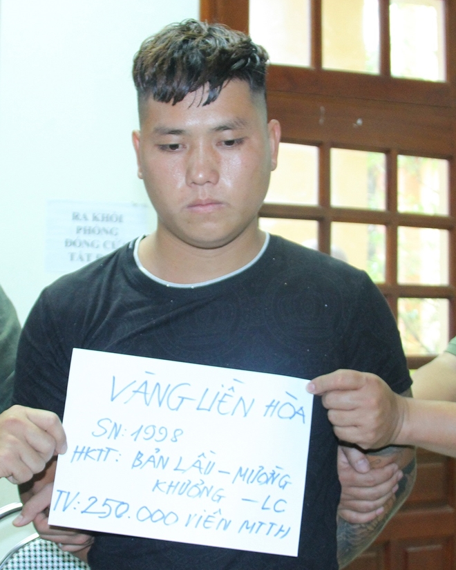 Vào lúc 7h50 phút, ngày 1/10, lực lượng chức năng phát hiện đối tượng đang điều khiển xe ô tô bán tải BKS: 24C - 062.07 và tiến hành vây bắt. Vàng Liền Hòa cùng toàn bộ tang vật là 250.000 viên ma túy tổng hợp bị bắt giữ.