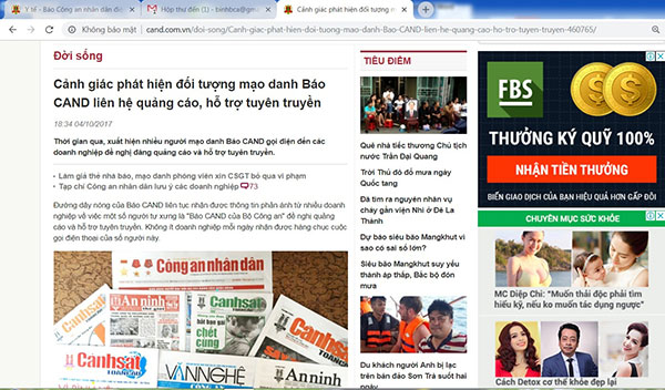 Người này đưa ra mức giá là 30 triệu đồng/bài với nội dung đánh bóng tên tuổi của công ty. Sau khi các bên đạt được thỏa thuận về giá cả, nội dung bài viết, phía DN phải chuyển tiền vào tài khoản cho đối tượng này. Sợ bị lừa, lại không có nhu cầu làm quảng cáo nên bà Thương đã quyết định từ chối.