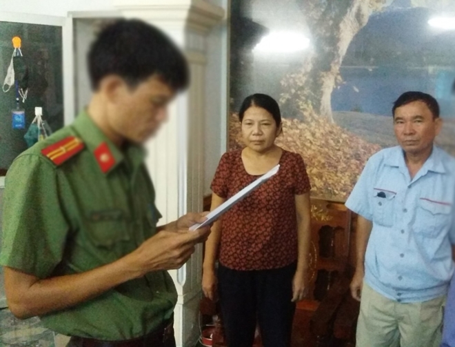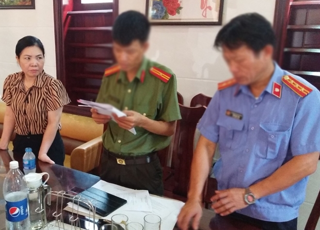 | Cơ quan chức năng thi hành lệnh bắt tạm giam bà Trần Thị Hà. |