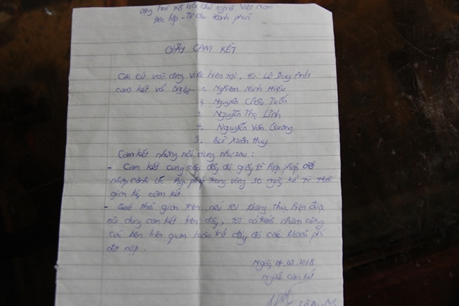 | Đối tượng Lê Duy Anh viết giấy cam kết trả lại toàn bộ số tiền cho người lao động nếu không xuất cảnh sang Úc thành công. |