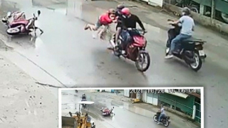 Đã bắt được 2 tên giật túi xách khiến cô gái "bay" cả người