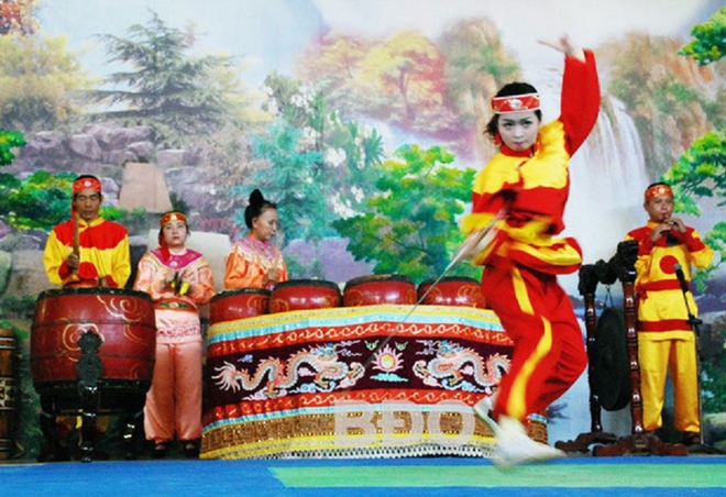 Bất ngờ tiếng trống vang lên từ phía võ đường trong khu bảo tàng. Đó là hiệu lệnh một thuở thúc giục đoàn quân ra trận. Ngay lập tức chúng tôi bị thu hút với đoàn người đang múa gậy trong bản nhạc võ công rộn ràng. Những cô gái Bình Định đang biểu diễn những bài võ mà chính do ba anh em nhà Tây Sơn đã sáng tạo trong những trận đánh.