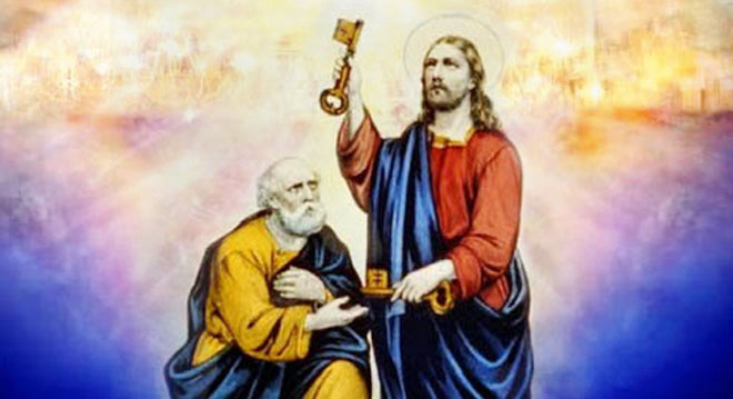 | Chúa Giêsu trao chìa khóa Nước Trời cho Thánh Phêrô. |